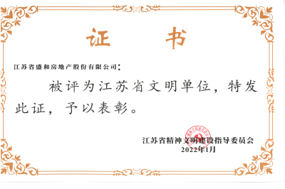 盛和房產獲評2021—2022年度南通市文明單位;